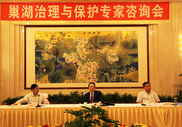 胡四一副部长在座谈会上指出,巢湖治理与保护必须采取综合措施,在继续加强工业、城市点源污染治理和高度重视农业面源污染控制的同时,统筹流域防洪、全省水资源配置和湖泊水环境改善及生态调度需求,加快实施引江济巢工程,增强水资源调控和巢湖水体自净能力,促进湖体水环境改善和水生态系统修复。当前,特别要加强巢湖市和其他水源地的污染监测及预警,切实采取有效应急措施,确保城乡供水安全。